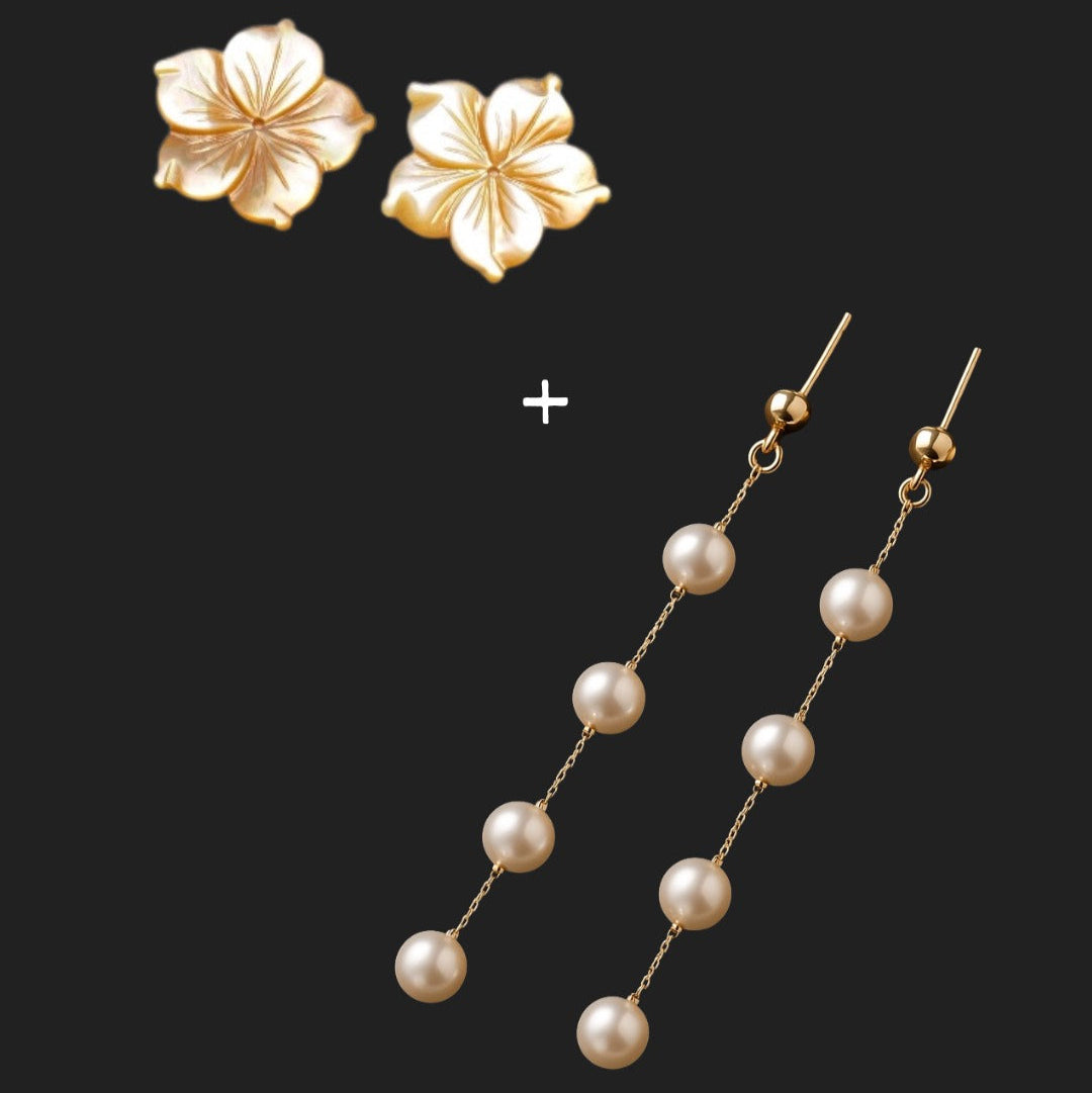 This exquisite piece begins with a strand of natural freshwater pearls, selected for their delicate lustre and timeless beauty. At its centre is a removable mother of pearl shell, sculpted into a radiant flower, a symbol of femininity and natural grace. Below, a tassel of freshwater pearls sways gently, accented with gold-plated stainless steel for a hint of modern luxury.